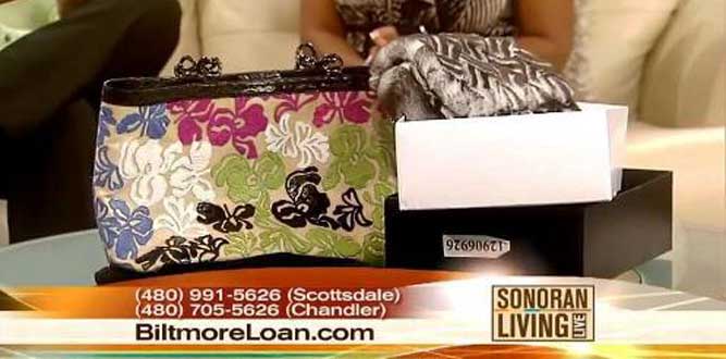 Host: We’ve heard that term before it’s the old adage, what is the name but in this case you got quite a lot of designer names appears on the table and were just getting started. David has brought some really beautiful things along that he’s collected over the summer. You don’t wanna miss it, so to find out how much your valuables maybe worth email David at the number on the screen that is info@biltmoreloan.com. You can also give them a call at (480) 991-5626 (LOAN) or you can call them also at (480) 705-5626. They have two locations one in Scottsdale, one in Chandler. You can walk in at both locations and that is BiltmoreLoan.com. They are big on Facebook so they’d love to hear from you on Facebook as well. So we’re just getting started here, David has a lot more really cool stuff and jewelry coming up right now.