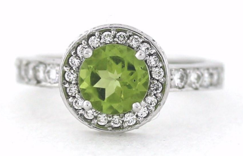 Peridot is one of the very few gemstones that come in a single color. Its bright green shade does not change under artificial light and looks best under natural daylight. A peridot’s color can range from yellow-green, brownish green, and dark olive. Some of the world’s best peridots have an iron content of less than 15% and typically includes trace elements of nickel and chromium, which add to their color. An intense olive green peridot is considered the most desirable and valuable in the market.